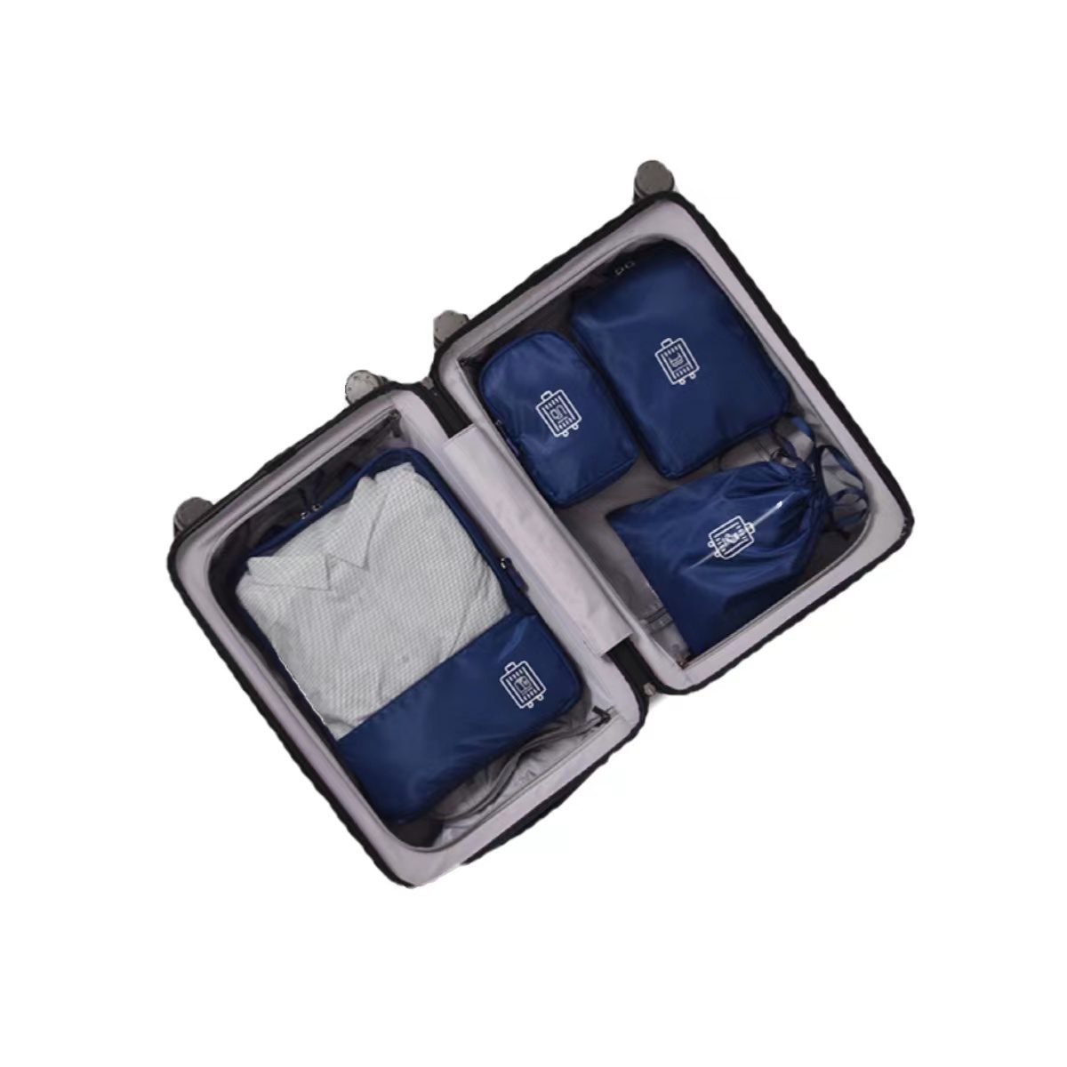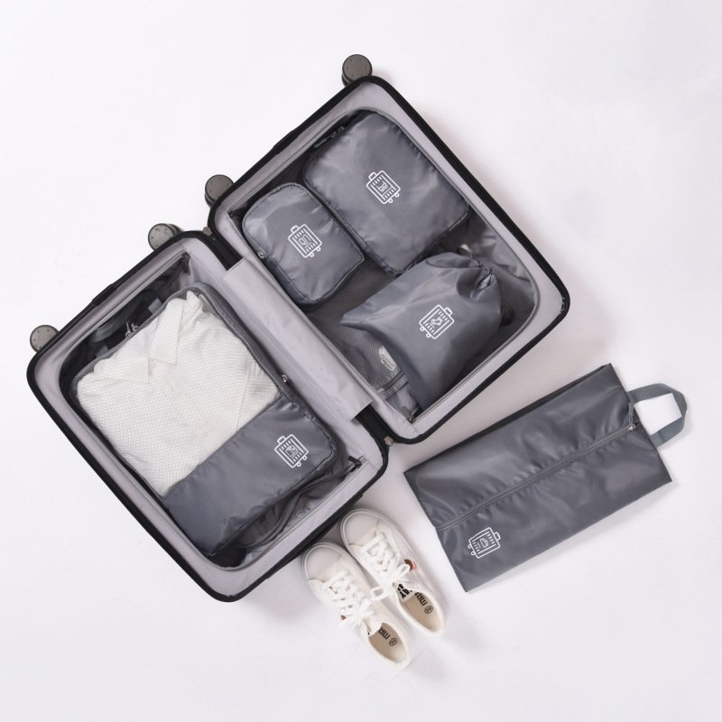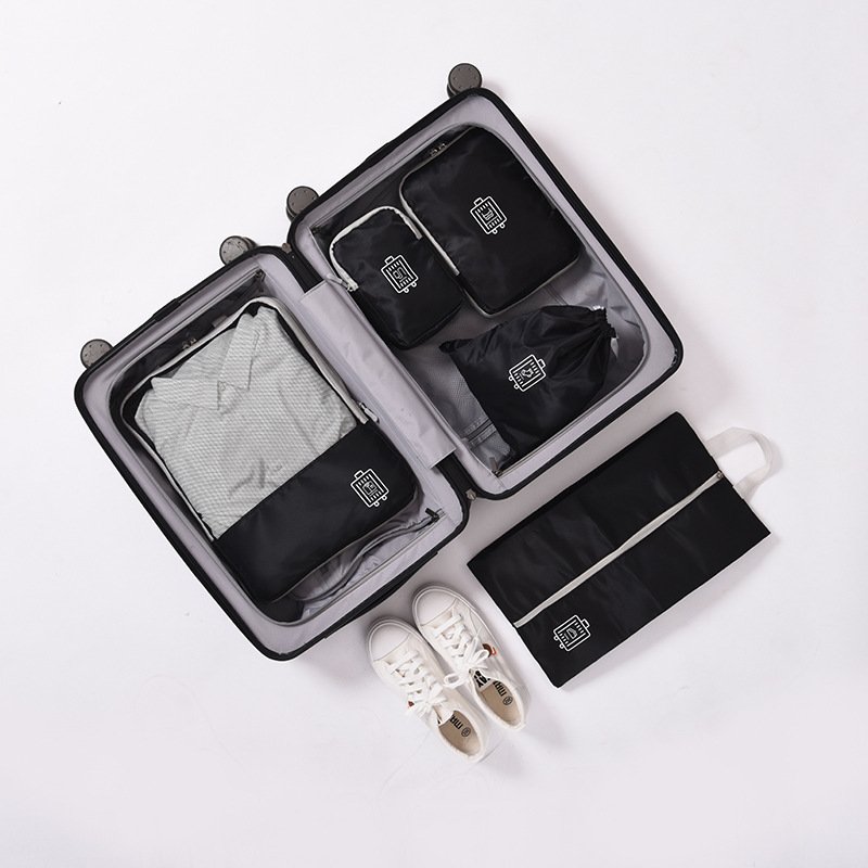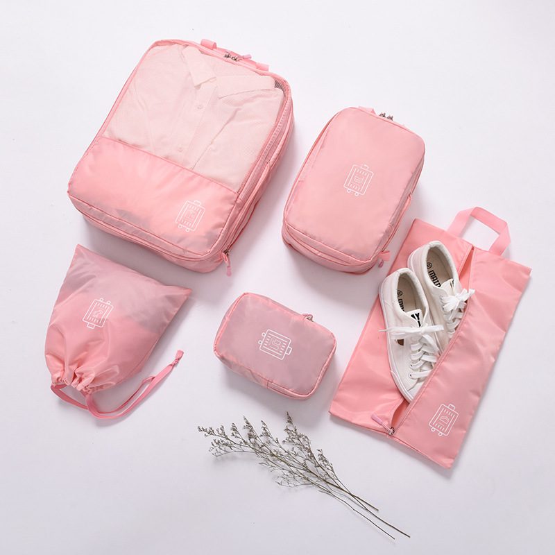 <Practical Suitcase> There are amount of 5 travel bags in this set, including Clothes Bag, Underwear Bag, Digital Product Bag, Sock Bag and Shoes Bag. The sturdy handle makes the travel bag easy and comfortable to carry. These bags can also be folded well to save space.