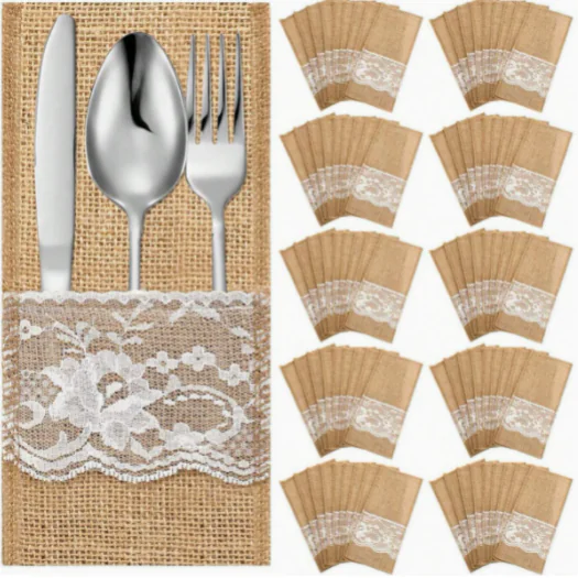 Christmas Decorations Knife and Fork Sets Linen Lace Tableware Supplies