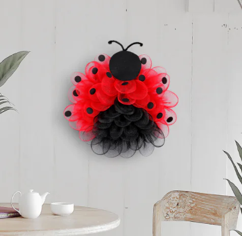 Ladybug Mesh Wreath Door Hanging Independence Day Cute Bee Wreath Window Decoration