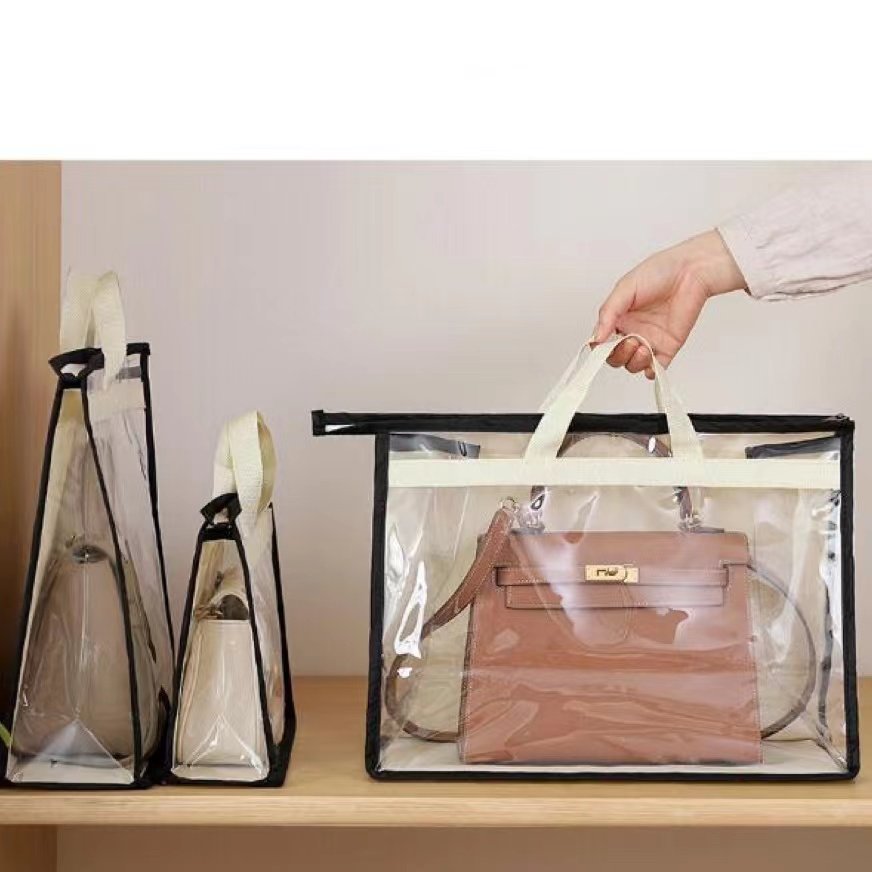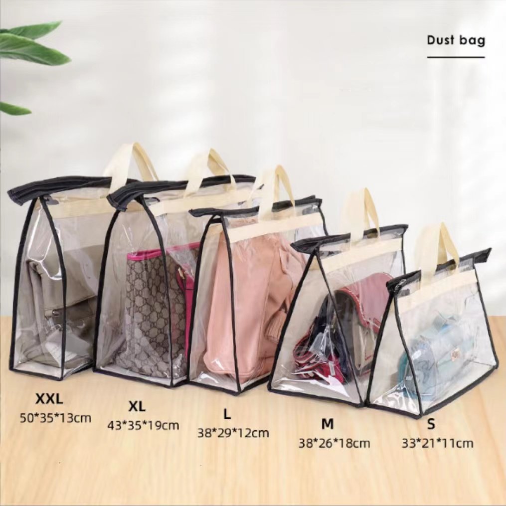 We procude dust bags for handbags. Before storage: the bags are stacked disorderly and dusty after a long time. After storage: Handbags are put on the dust bags, which is clean, transparent, visible and easy to take.