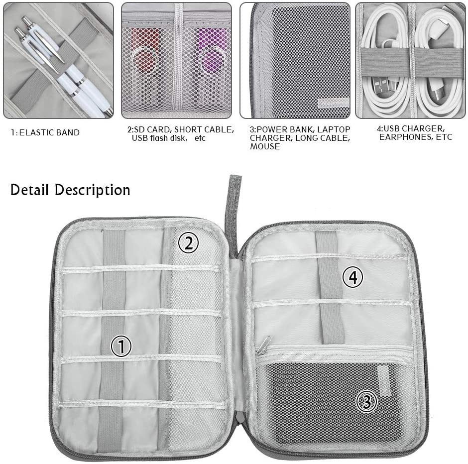 ELECTRONICS ORGANIZER BAG: Cable, batteries, USB cord, pens, ear phones, SD cards, electrical adaptors etc. This electronics cable bag will help you to keep all of your electronics accessories and various cables together.